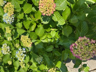 Every day I look out my window or walk along the path leading to our front door, and find myself anxious for the spectacular unveiling of color from our enormous hydrangea bushes. They are full of dark green leaves and then I’ll notice some light green buds arrive and I get excited. Then, just a suggestion of blue blossoms appear with a few purples. I look around my neighborhood and see BIG blue hydrangeas in full bloom, bright and vibrant with color. I notice the others get more direct sun and wonder if this nurtures them in a way that mine don’t experience. Mine have to muddle through with only a glimpse of direct sunlight in the afternoon. But I know they’ll find their way.
